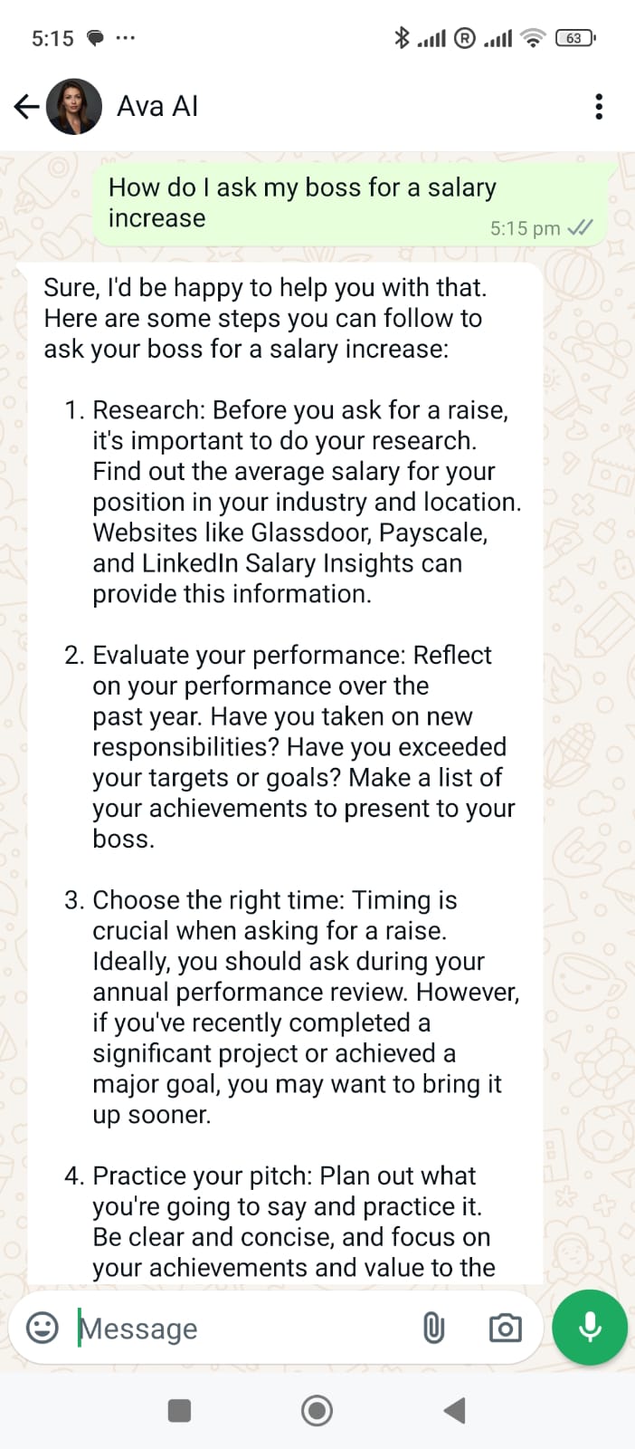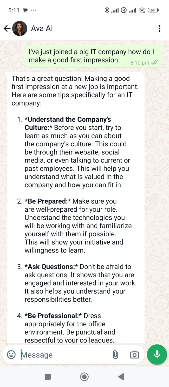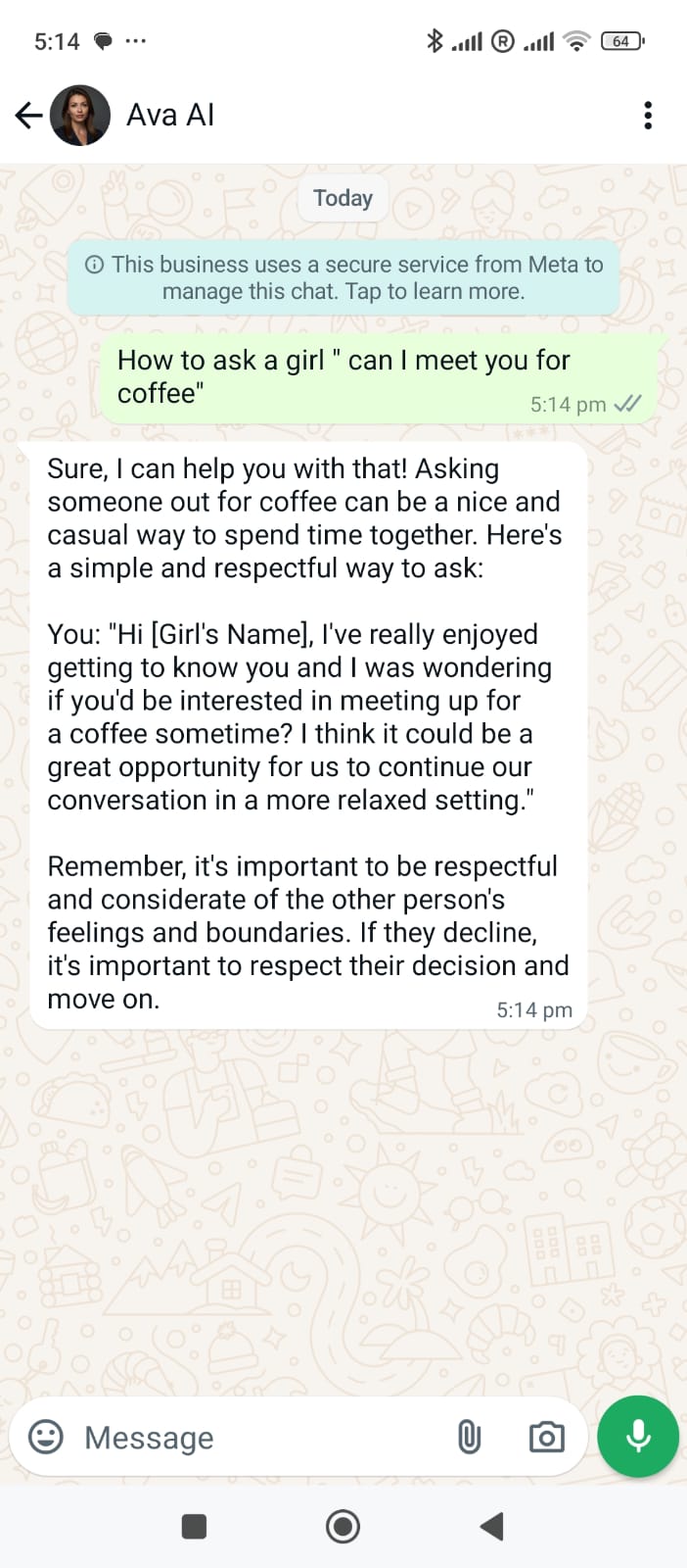 Ready to have a supportive friend by your side? Start chatting with Ava today and experience the comfort of having a caring companion available whenever you need one.